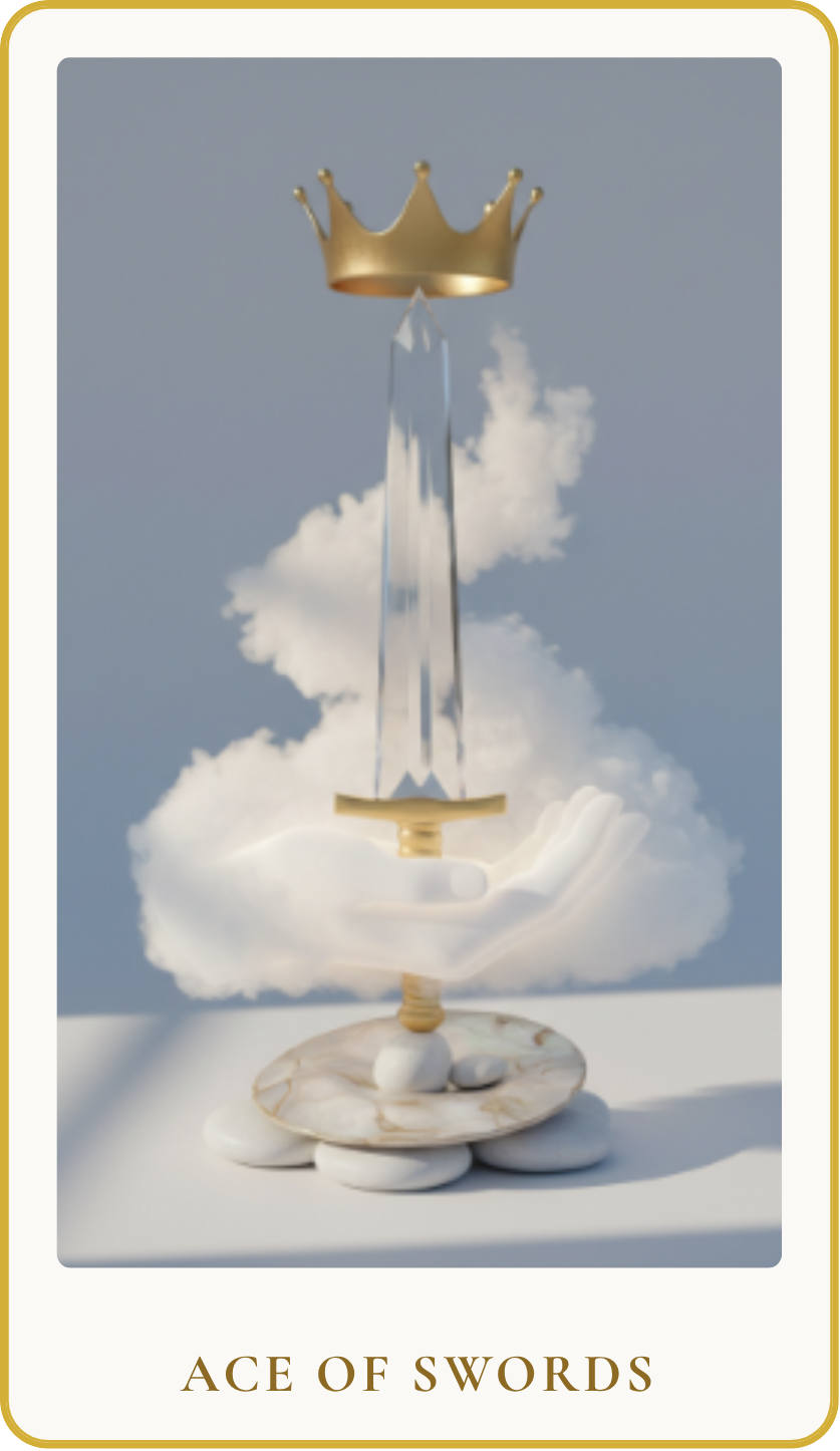 The Ace of Swords represents the raw, unadulterated power of the mind, intellect, and truth. It symbolizes a moment of mental breakthrough, clarity, or the sudden emergence of a powerful new idea. This card signifies piercing through confusion, cutting to the heart of a matter, and establishing clear communication. It's about mental victory, decisive action, and the courage to confront reality with logic and precision. The Ace of Swords signals a fresh start driven by intellectual insight and the pursuit of unvarnished truth.