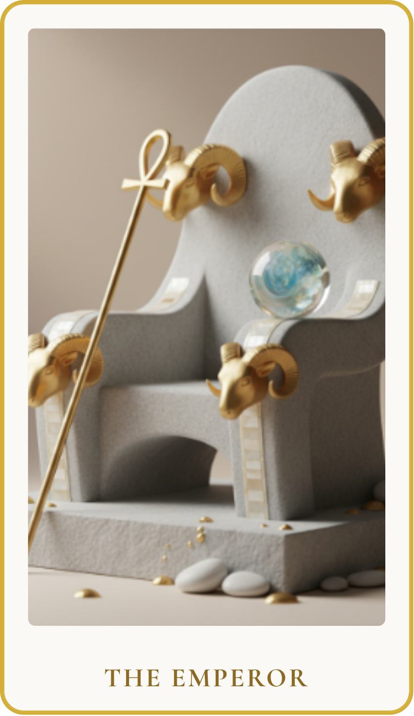 The Emperor tarot card represents the principle of structure, authority, and control. As Major Arcana IV, he embodies the drive to manifest order out of chaos, establishing systems, rules, and boundaries. He is the ultimate builder, ruler, and provider, symbolizing the stable, paternal energy that brings discipline and security.