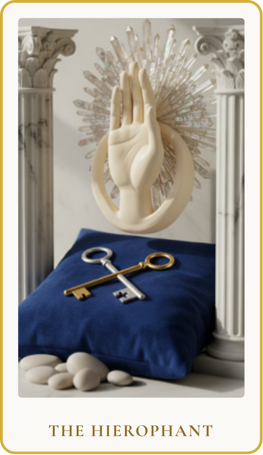 At its core, The Hierophant speaks to the pursuit of knowledge through traditional channels and the acceptance of widely recognized truths. It encourages conformity to a system of belief or a set of values, suggesting that growth and understanding can be found by following established teachings and respecting the collective wisdom passed down through generations. It is the archetype of the teacher, the guide, and the keeper of sacred knowledge.