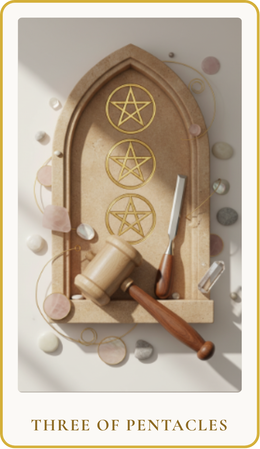 In career and finance, the upright Three of Pentacles is a highly auspicious card. It indicates successful teamwork, recognition for your skills, and opportunities for advancement or promotion. You might be engaged in a project that requires expert collaboration, and your contributions are valued. This card is strongly associated with apprenticeship, mentorship, and professional development, suggesting a period of learning and growth that leads to mastery. Financially, it points to steady, tangible growth resulting from diligent work and smart planning. It can signify investing in your skills or education, leading to better career prospects and increased income. This is a time for building your professional reputation, seeking out constructive feedback, and contributing your best work to achieve collective and personal success.
